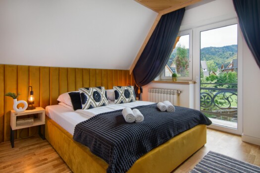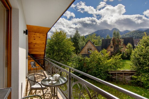 - Wyjście na balkon z widokiem na góry