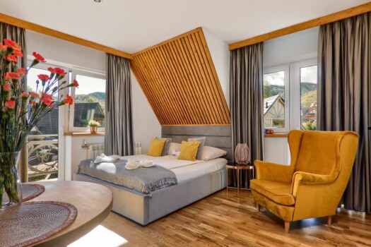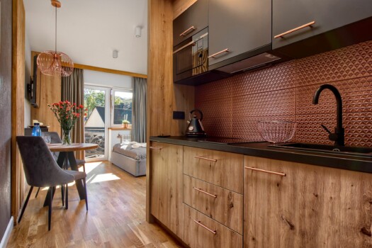 Kompaktowy, ale niezwykle przytulny Apartament nr 2 o powierzchni 28 m² to doskonały wybór dla par szukających komfortu i spokoju. Balkon z widokiem na Tatry sprawia, że każdy poranek staje się wyjątkowy.