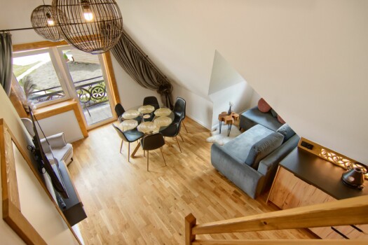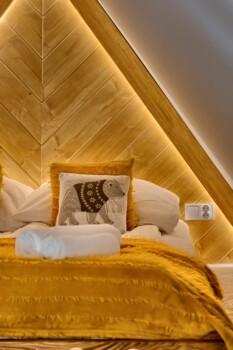 Elegancki i przestronny Apartament typu Deluxe o powierzchni 42 m² to idealne miejsce na wyjątkowy wypoczynek. Dzięki dwóm dużym łóżkom podwójnym oraz przytulnemu salonowi z rozkładaną sofą, zapewnia komfort zarówno rodzinom, jak i grupom przyjaciół.